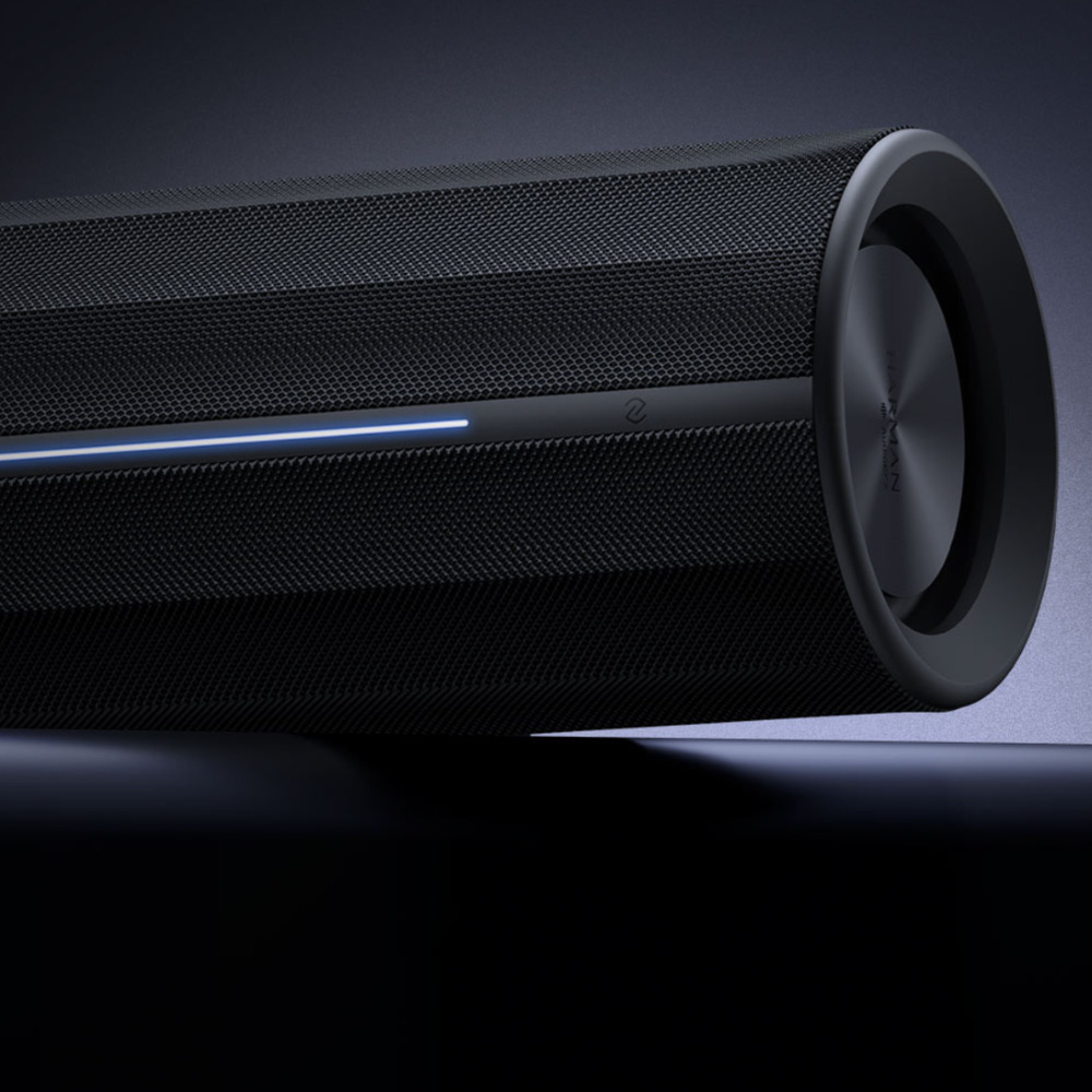 - Diseño cilíndrico que distribuye el sonido de manera uniforme en todas direcciones.