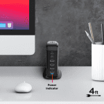 Estación de carga ideal para oficinas, salas de esperas o para usuarios demandantes, cuenta con 2 puertos USB-C PD capaces de entregar hasta 18W, y 4 puertos USB-A, compatibilidad universal, cuenta con luz LED guia, incluye cable de conexión a la luz de pared.